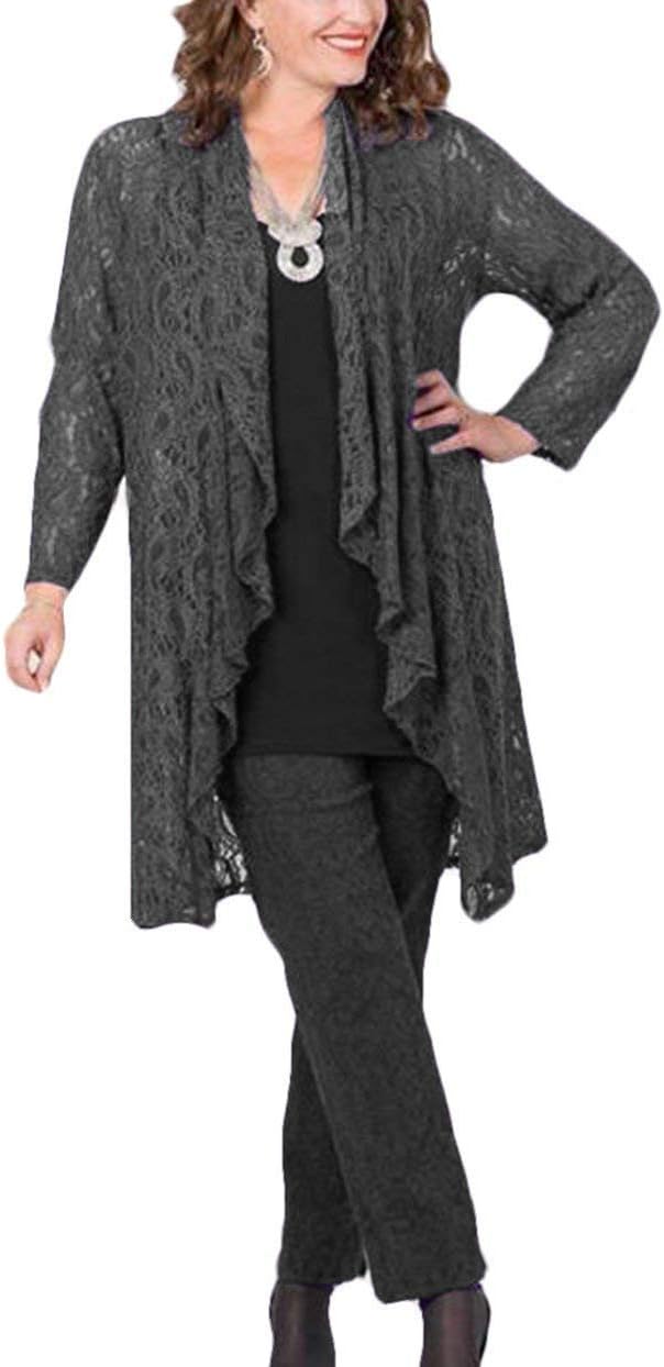 LoveEtoo, elegante pantalón de encaje para mujer, de 3 piezas, vestido de madre del novio, novia, manga larga con chaqueta/atuendo(US2, gris)