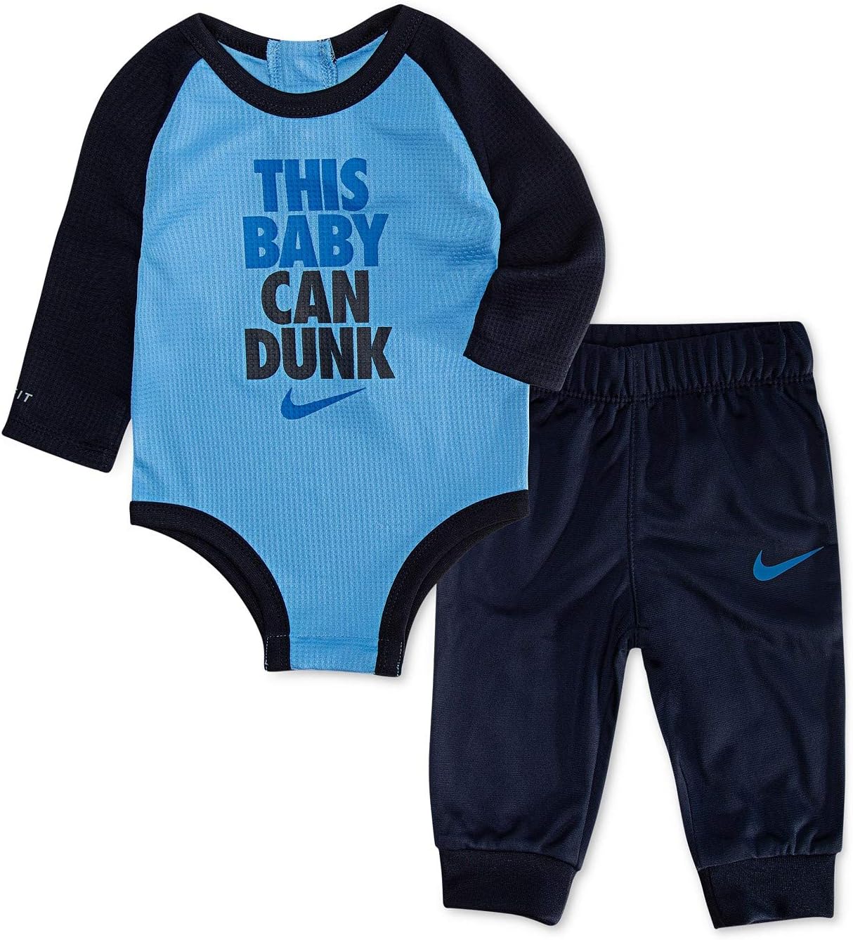 Nike Baby Boy Bodysuit & Pants 2 Piece Set (0-3 Months, Obsidian(56E233-695)/Blue)