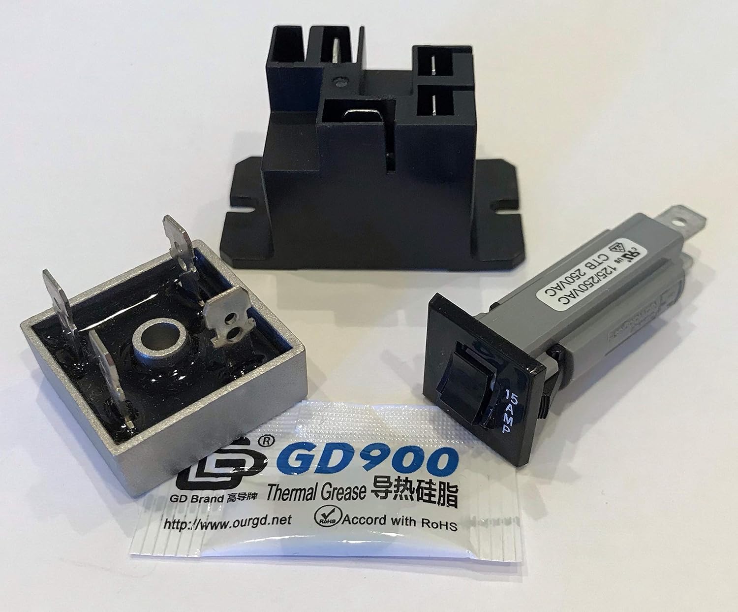 Includes: 40 Amp relay, 50 amp rectifier, 15 amp circuit breaker, thermal paste