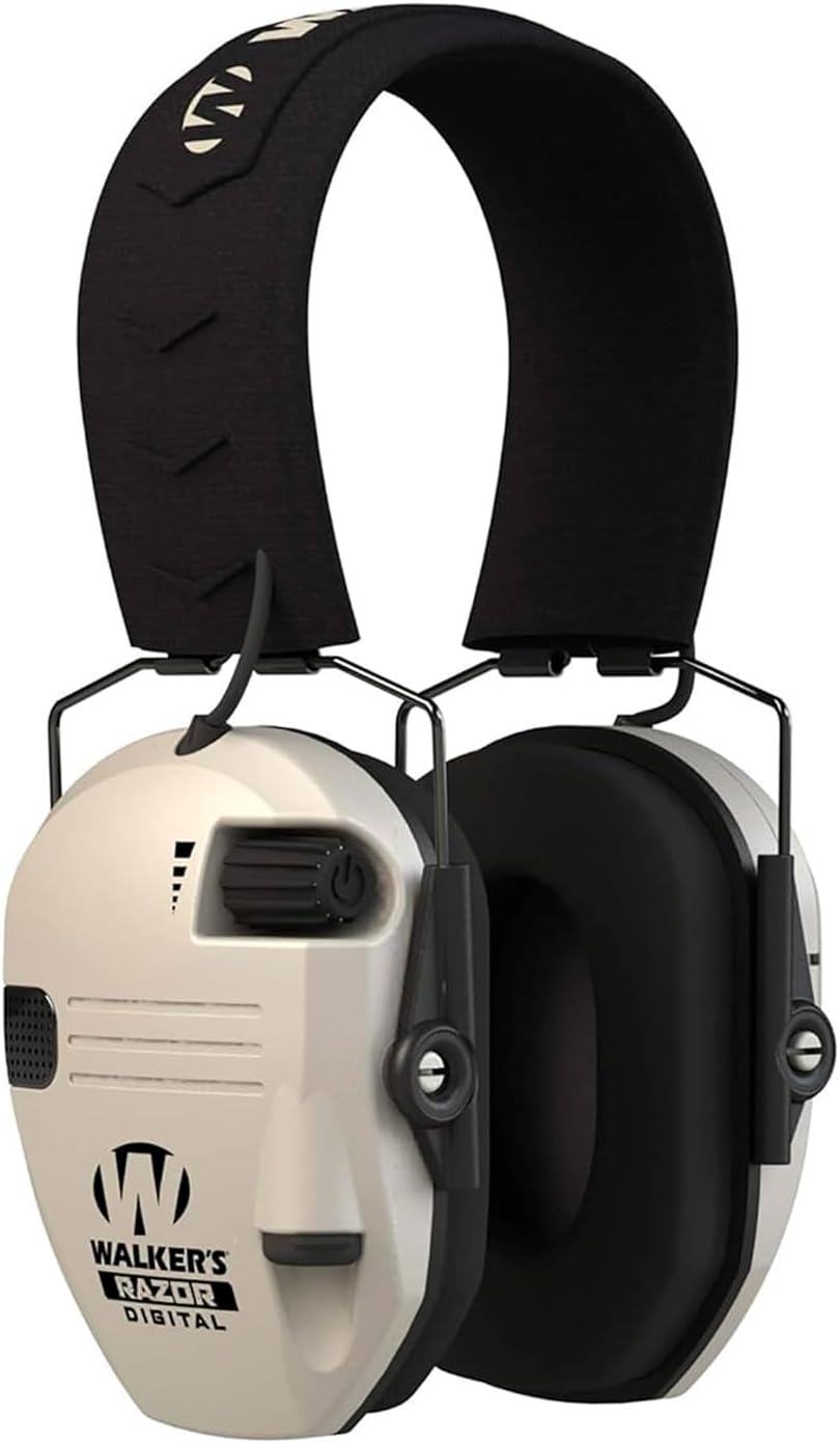 WALKER'S RAZOR PRO DIGITAL EARMUFFS The Razor PRO Digital shooting earmuffs utilize advanced digital circuity to provide enhanced clarity of desirable ambient sounds - such as voice, high-frequency steel impact, and environmental sounds like animal movement - while offering improved suppression of undesirable background noise, such as wind. Combined, the Razor PRO's sound processing makes for a clearer and more comfortable audio experience on the range or in the field. The Razor Digital hunting safety muff continues the ergonomic design & diverse functionality of the Razor series with compact ear cups, a redesigned headband for hours of comfortable wear, and an easy-to-operate control knob. High-gain omnidirectional microphones provide 360-degree sound pickup to eliminate audio "blind spots". SPECS: Advanced Digital Circuit; Active Dynamic Sound Suppression; Hi-Gain Omni Directional Mics; Clear Digital Sound; Lightning Fast Reaction Time; Wind Noise Reduction; Auto Shut Off 2, 4, or 6 Hours; Ergonomic Head Band Design; NRR - 23dB; Battery - 2 AAA Batteries (Included).