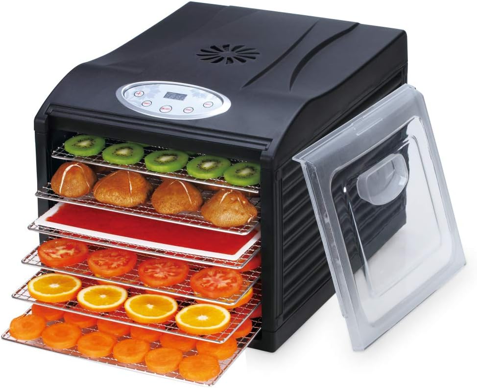 Samson"Silent" Dehydrator with 6 STAINLESS STEEL Trays and Digital Timer and Temperature Control for Fruit, Vegetables, Beef Jerky, Herbs, Dog Treats, Fruit Leathers and More