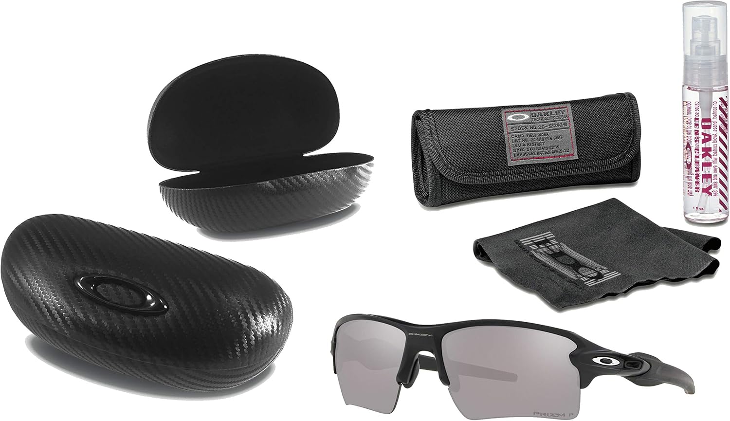 Gafas de sol Oakley Flak 2.0 XL (montura negra mate, lente polarizada negra Prizm) con kit de limpieza de lentes y funda rígida de fibra de carbono Ellipse O