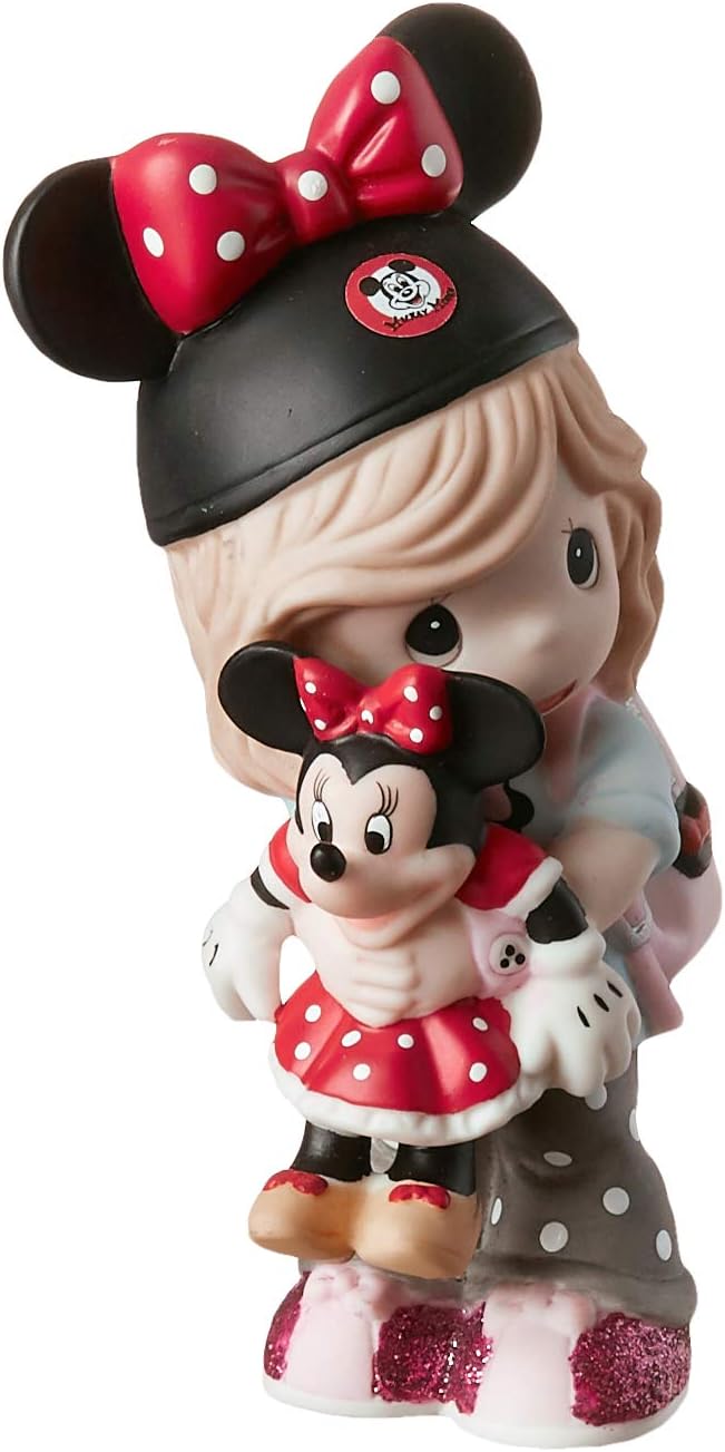 This Precious Moments girl is a Disney Minnie Mouse fan extraordinaire! Dressed in her Minnie Mouse hat backpack shirt and wristwatch she’s ready for a magical day with her toy Minnie Mouse. The delightful details of this adorable figurine will warm the hearts of Disney fans with fond memories and thoughts about wonderful Disney vacations and childhood Disney dreams. Give this gift to Disney fans of all ages and just wait for big smiles and happy expressions of deep appreciation for your wonderful gift! Makes a great Disney vacation souvenir. Truly it’s the perfect collectible gift for a Disney Minnie Mouse fan on birthdays holidays and any day. This Precious Moments Disney Showcase figurine is meticulously sculpted of fine bisque porcelain and expertly hand-painted. Approximately 5 inches high.