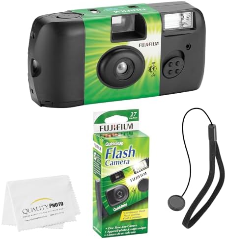 Fujifilm QuickSnap Flash 400 Disposable 35mm Camera (1 Pack) Bonus Hand Strap + Quality Photo Microfiber Cloth
