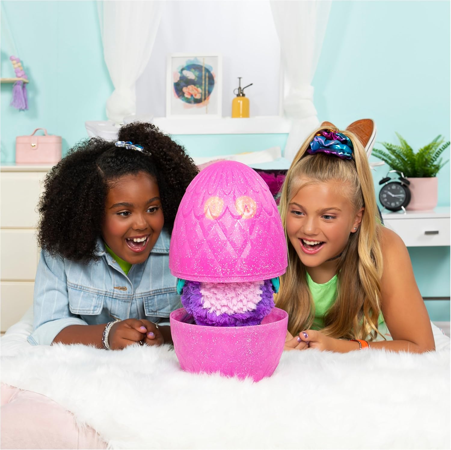 HUEVO QUE SE PUEDE VOLVER A INCUBAR: Dentro del huevo de Hatchimal más grande de la historia, puedes incubar un Hatchimals rosa o morado ¡WOW en solo 5 minutos! Luego, prolonga el juego de huevos y eclosiona una y otra vez. ¡Cada vez que Llalacorn se despierte, se sorprenderá con una de las diez sorpresas!