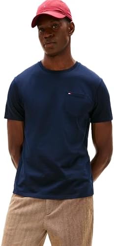Tommy Hilfiger Hombres Manga Corta de Algodón Crewneck con Bolsillo T-Shirt Esencial