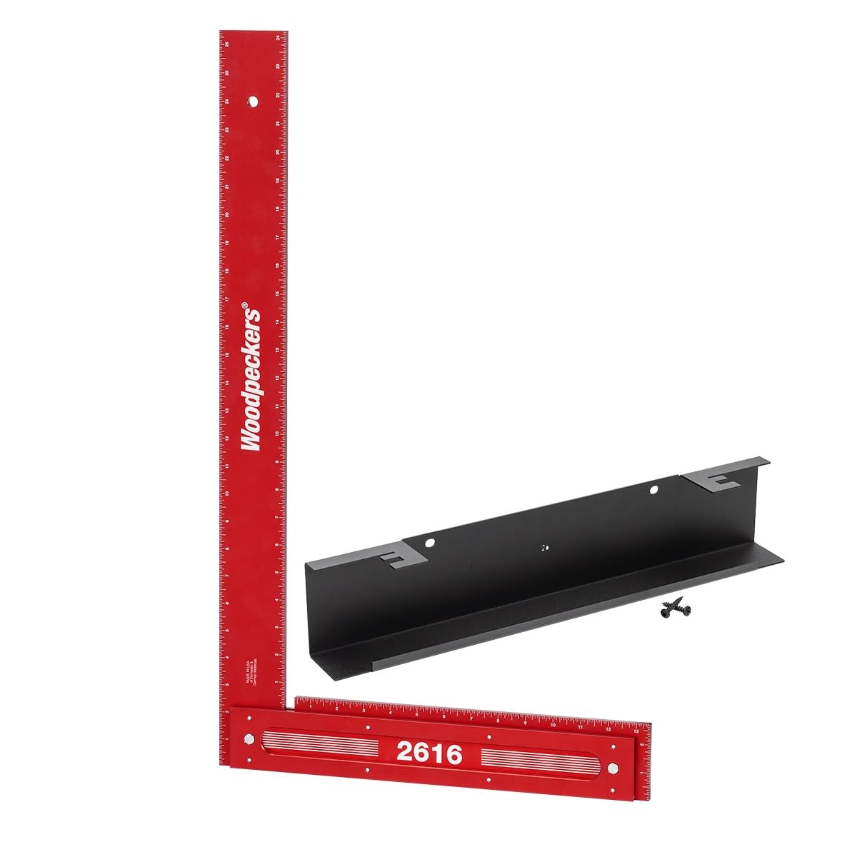 MORE FEATURES - With the square standing upright, checking casework parts for square is an effortless, hands-free operation. We even mill a notch at the inside corner of the square so you can “zero-out” your layout line all the way to the edge of your work. Easy to read measurement scales are laser etched in 1/16th increments on both sides of the ruler. Comes with Rack-It wall mount.