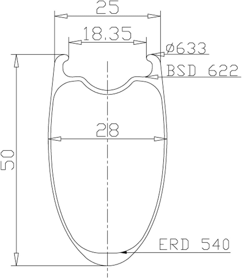 Only 890g Lightweight 700C Aerodynamic Carbon Road Bike Rims 50mm Depth 25mm Rim Width - 18.35mm Inner Width - 2-Way Clincher Tubeless: Use of either traditional tubed tires or tubeless tubeless tires; Tubeless tires can offer lower rolling resistance and better protection against punctures