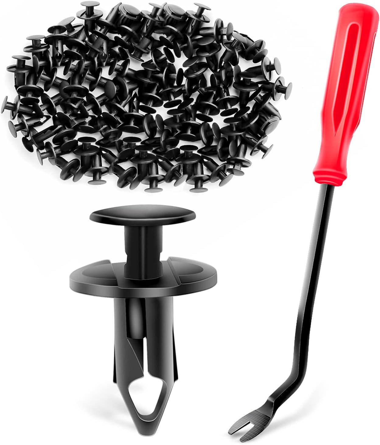 GOOACC 100PCS Nylon Bumper Fastener Rivet Clips for GM 21030249 for Ford N807389S,1PC Bonus Fastener Remover