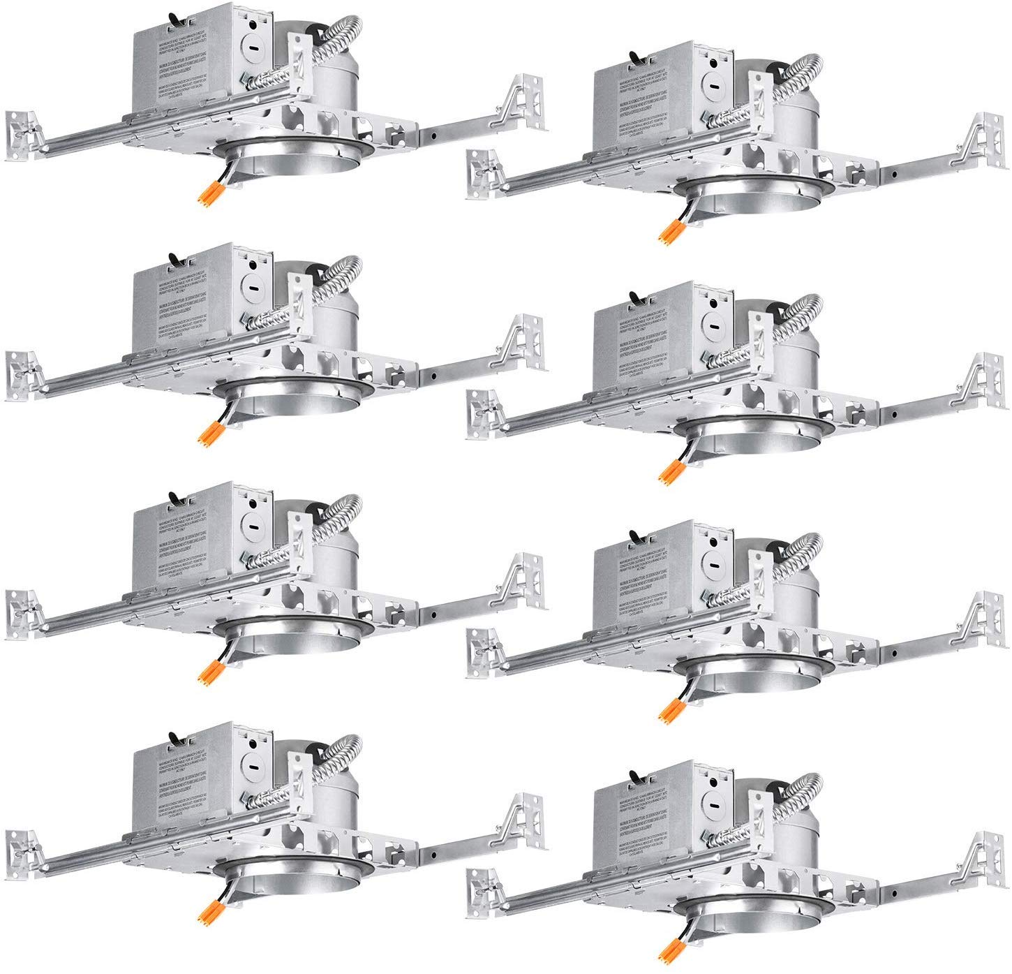 TORCHSTAR 8-Pack 4 Inch Shallow New Construction Recessed Lighting Housing, IC Rated & Air Tight Ceiling LED Downlight Can with J-Box, ETL Listed Slim/Narrow Can Light Housing, TP24 Connector
