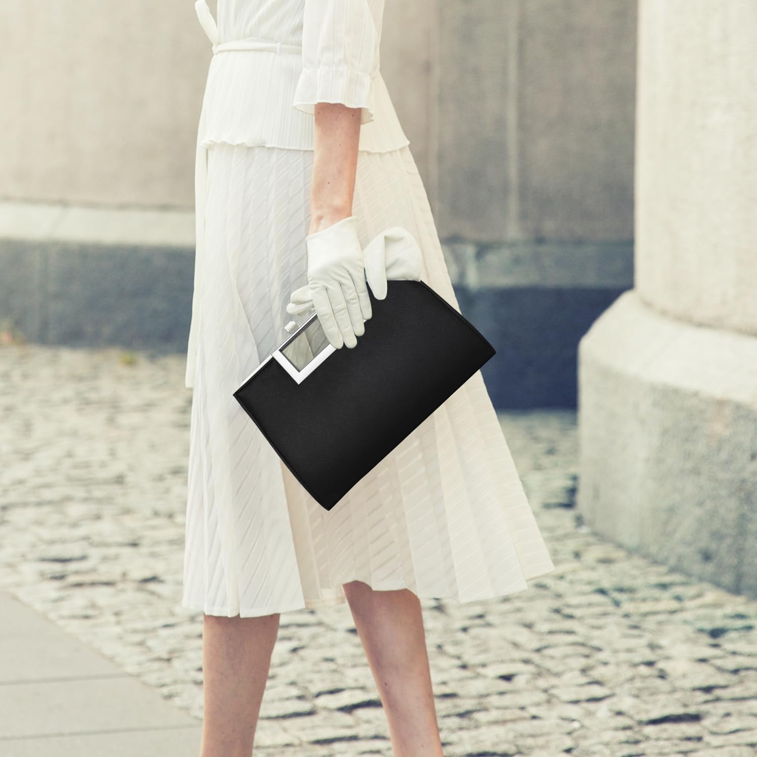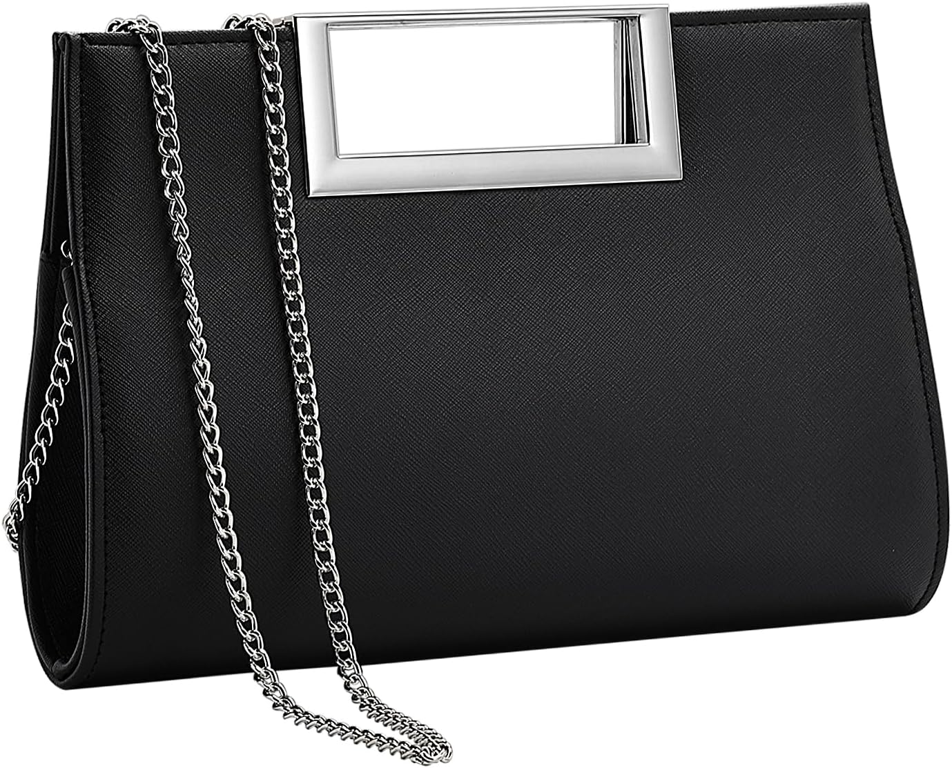 WALLYN'S Clutch Purse for Women PU Leather/Straw Evening Party Metal Grip Cut it out Handbag with Shoulder Chain Strap