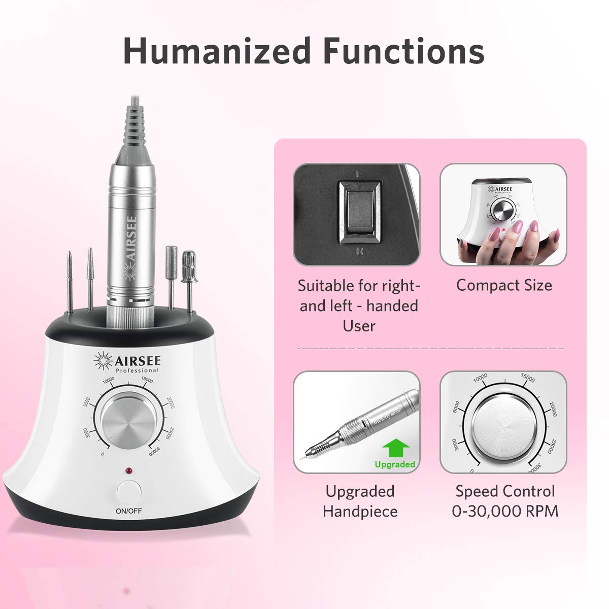 AIRSEE Electric Nail Drill Machine 0-30000 RPM Professional Nail Drills for Acrylic Nails Gel E-file Nail Dremel for Salon Techs and Home Beginners DIY Use