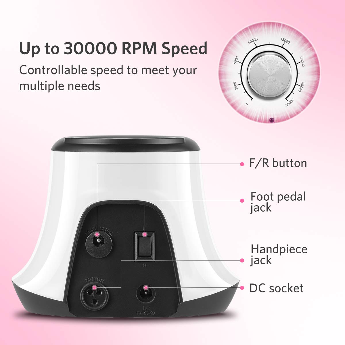 Easy to Use: From 0-max 30000RPM with more convenient clear speed control and on-off foot pedal control, make your manicure more efficient and your nail grinding more precise without any hurt.