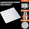 NearMoon Rain Shower Head, High Flow Stainless Steel Square Rainfall Shower, High Pressure Design, Awesome Shower Experience Even At Low Water Flow (8 Inch, Chrome Finish)