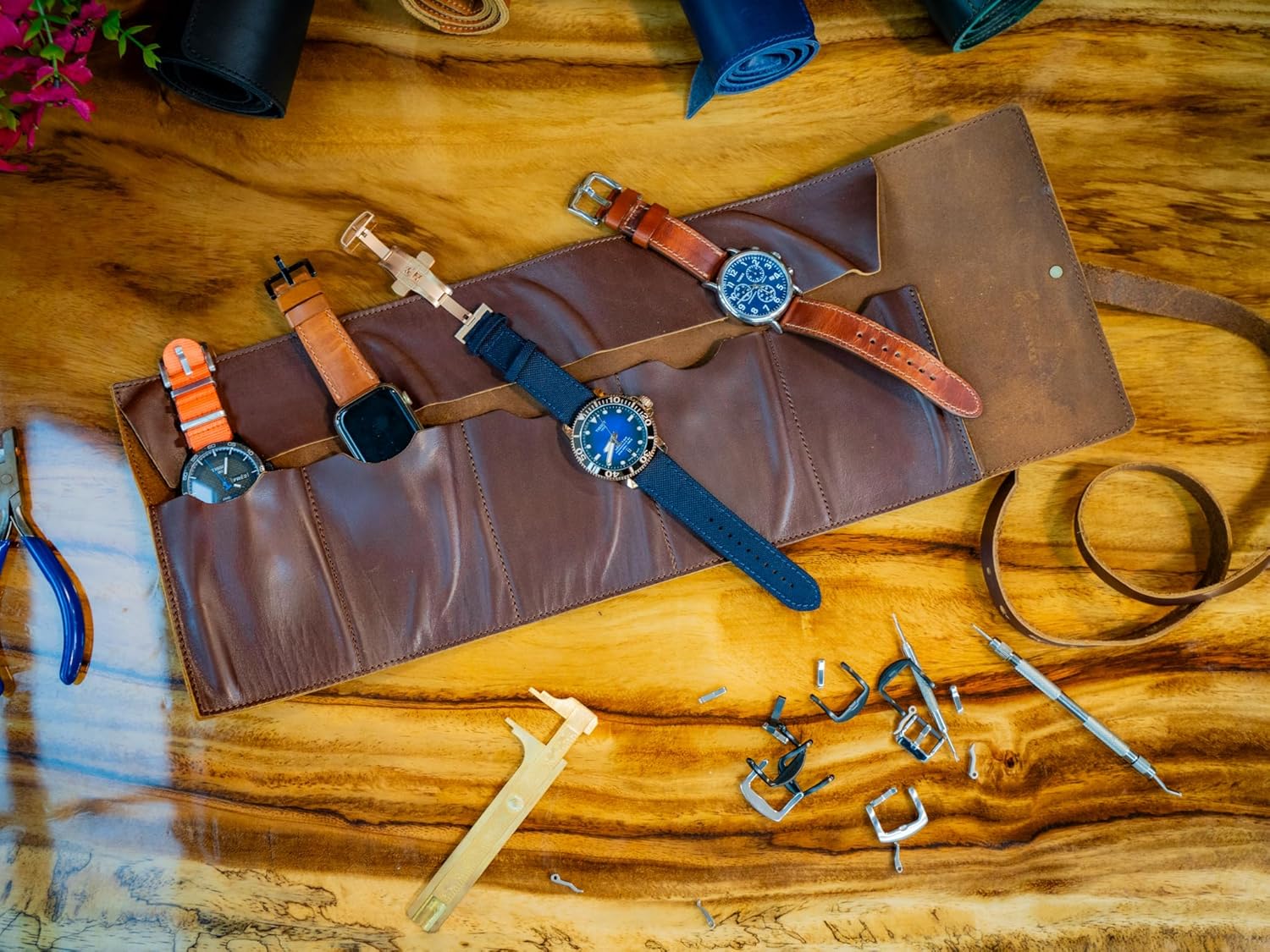 HANDMADE: Leather watch roll made in the USA from 100% full grain cowhide. Each item is individually handcrafted and is a unique one-off item, no two will be exactly the same. Travel watch case will get better and softer over time the more it's handled.