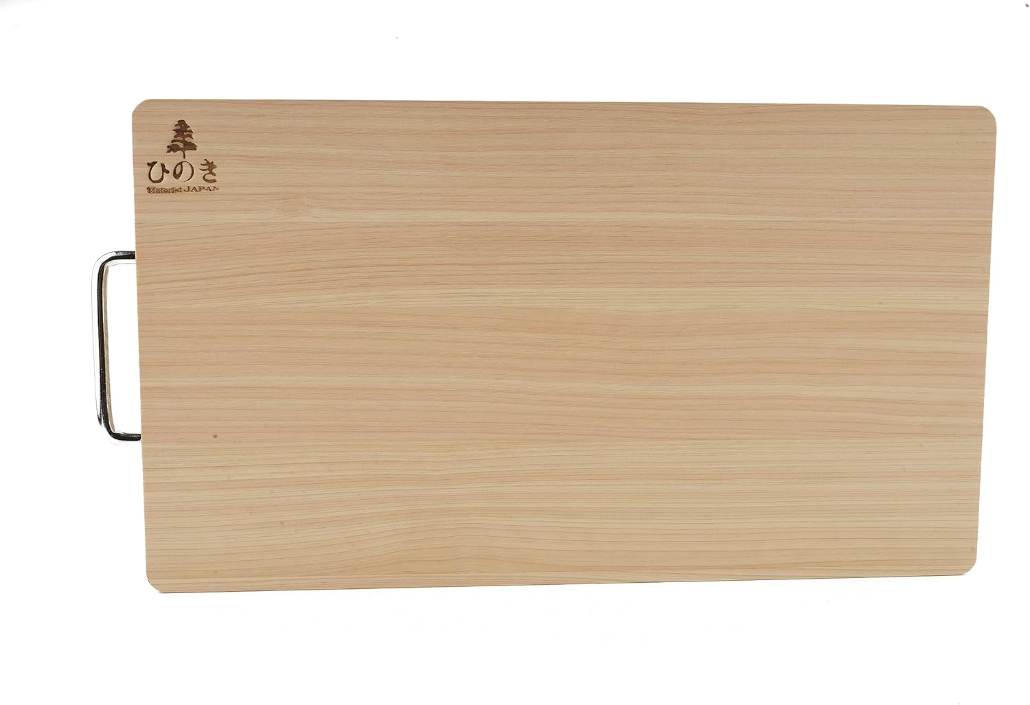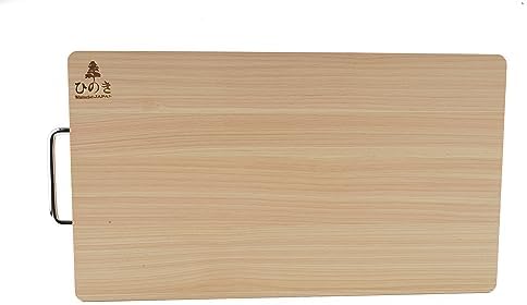 BOUMBI Hinoki Wood Reversible Cutting Board with Metal Handle(15.6x9.1x1.05 RM_Medium)