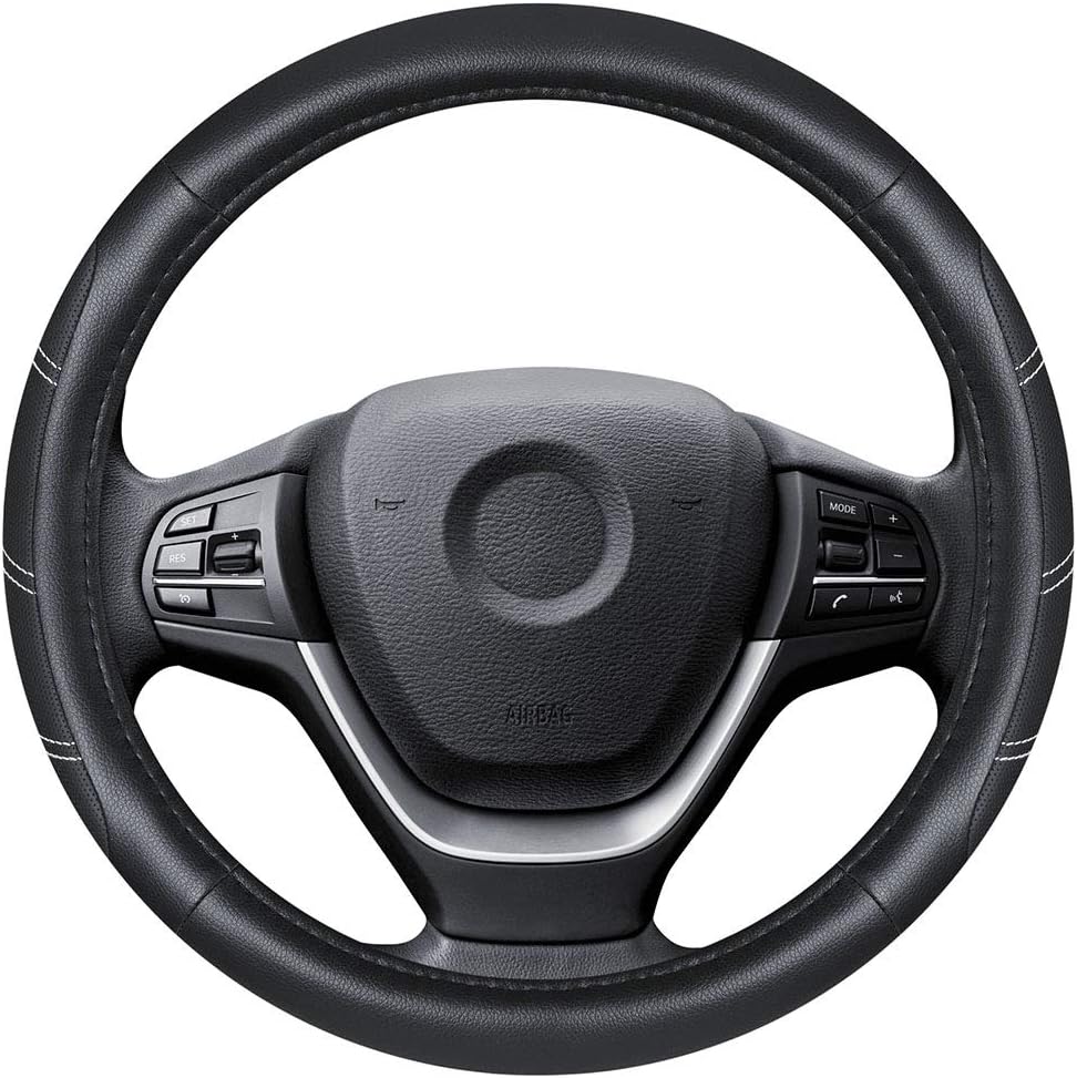 Elantrip Sport Leather Steering Wheel Cover 14 1/2 inch to 15 inch Universal, Padded Soft Grip Breathable for Car Truck SUV Jeep, Anti Slip Odorless Black
