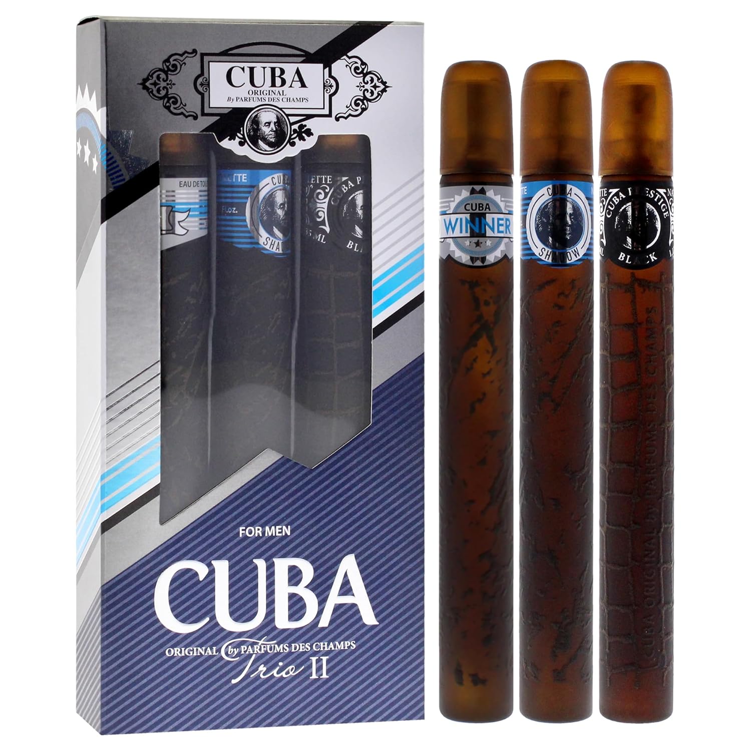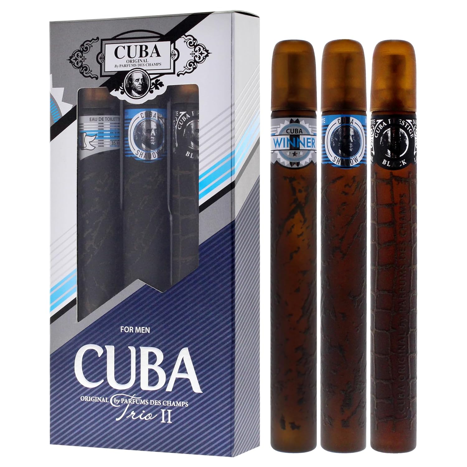 Cuba Cuba Trio 2 Hombres 3 Piezas Juego de Regalo 1.17oz Cuba Winner EDT Spray, 1.17oz Cuba Shadow EDT Spray, 1.17oz Cuba Prestige Black EDT Spray