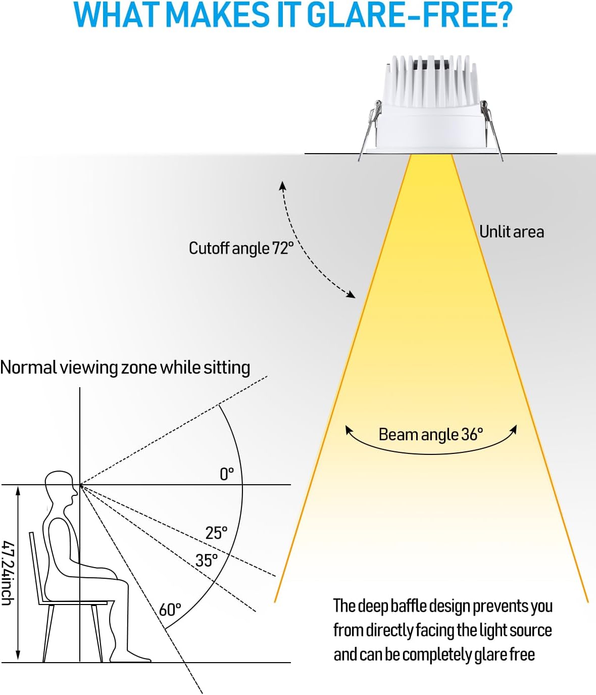 High Brightness: The dimmable 3 inch recessed led lights offers a bright illumination of 700lm and a high CRI90. This ensures accurate color representation, making it perfect for tasks requiring precise color discrimination