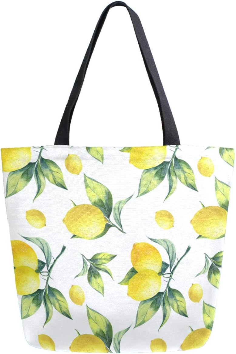 Chic Extra Large Shoulder Grocery Tote Bag, Stylish Lemon Leaves Pattern Canvas Reusable Handle Bags for Men Women Gym Weekender Picnic Beach Travel Home Storage Market Shopping