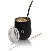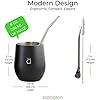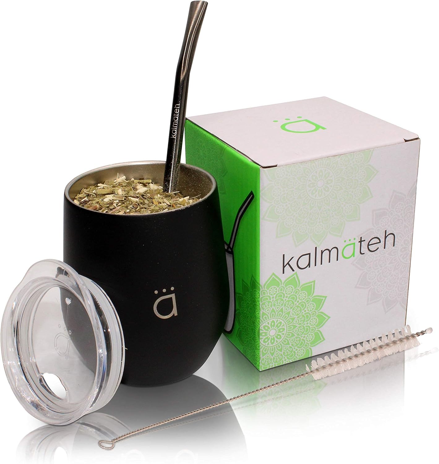 Calabaza de yerba mate Kalmateh, de acero inoxidable de doble pared con tapa sin BPA, pajita con filtro de bombilla y limpiador de bombillas (negro mate, 8 oz)