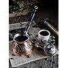 PREPARACIÓN TRADICIONAL: La olla de cobre artesanal le permite preparar café turco rico y sabroso como en los cafés tradicionales, con café finamente molido hervido y servido en pequeñas tazas.