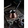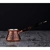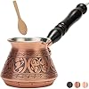 DEMMEX Thickest Copper Turkish Greek Arabic Coffee Pot, Stovetop Coffee Maker, Cezve Ibrik Briki with Wooden Handle & Spoon, Hand Engraved (Matte Copper, 9 Ounces)