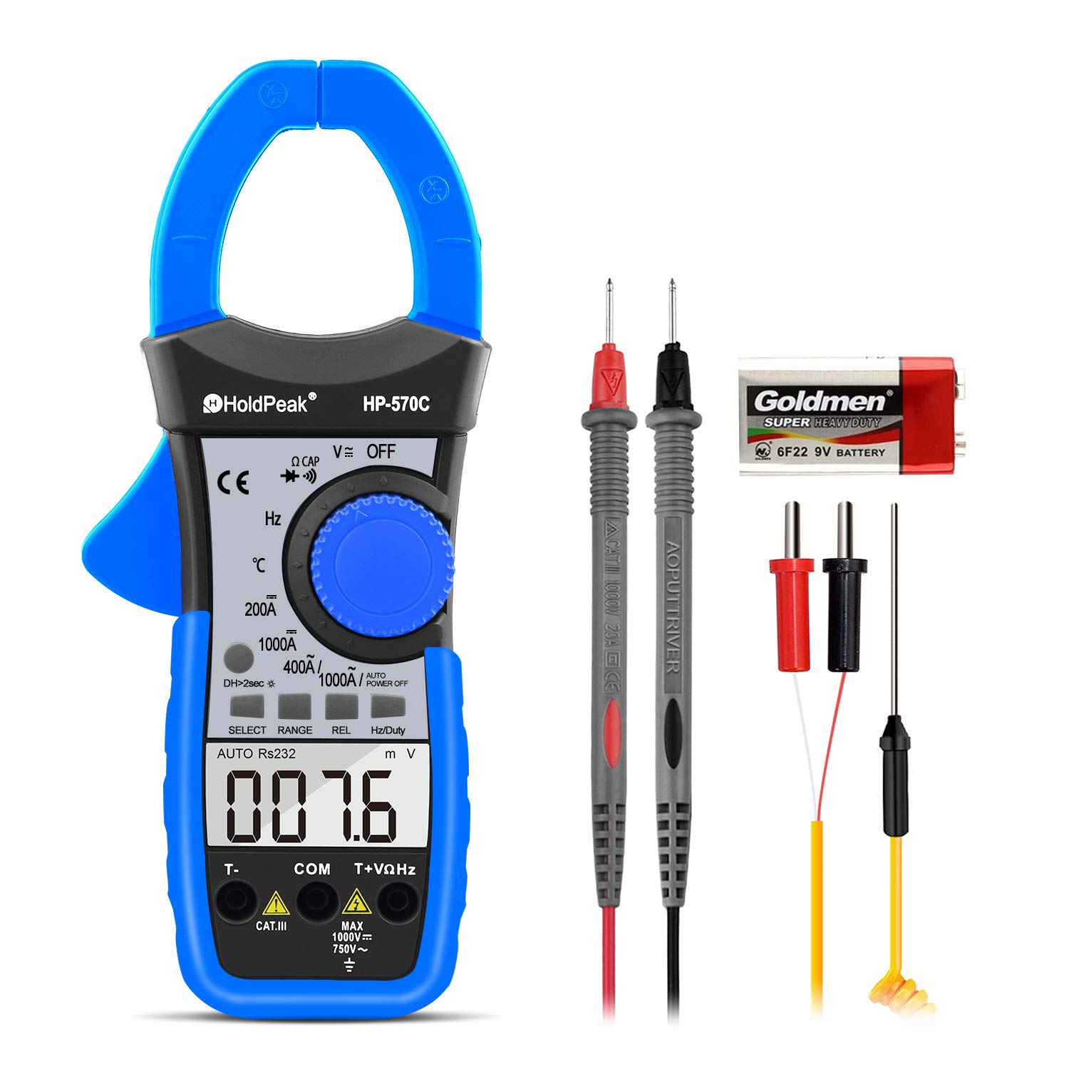 HOLDPEAK Digital Clamp Meter Current Multimeters HP-570C 4000 Counts Auto Ranging Multimeter with AC/DC Voltage & Current, Resistance, Capacitance, Frequency, Diode, Hz Test,Continuity Buzzer