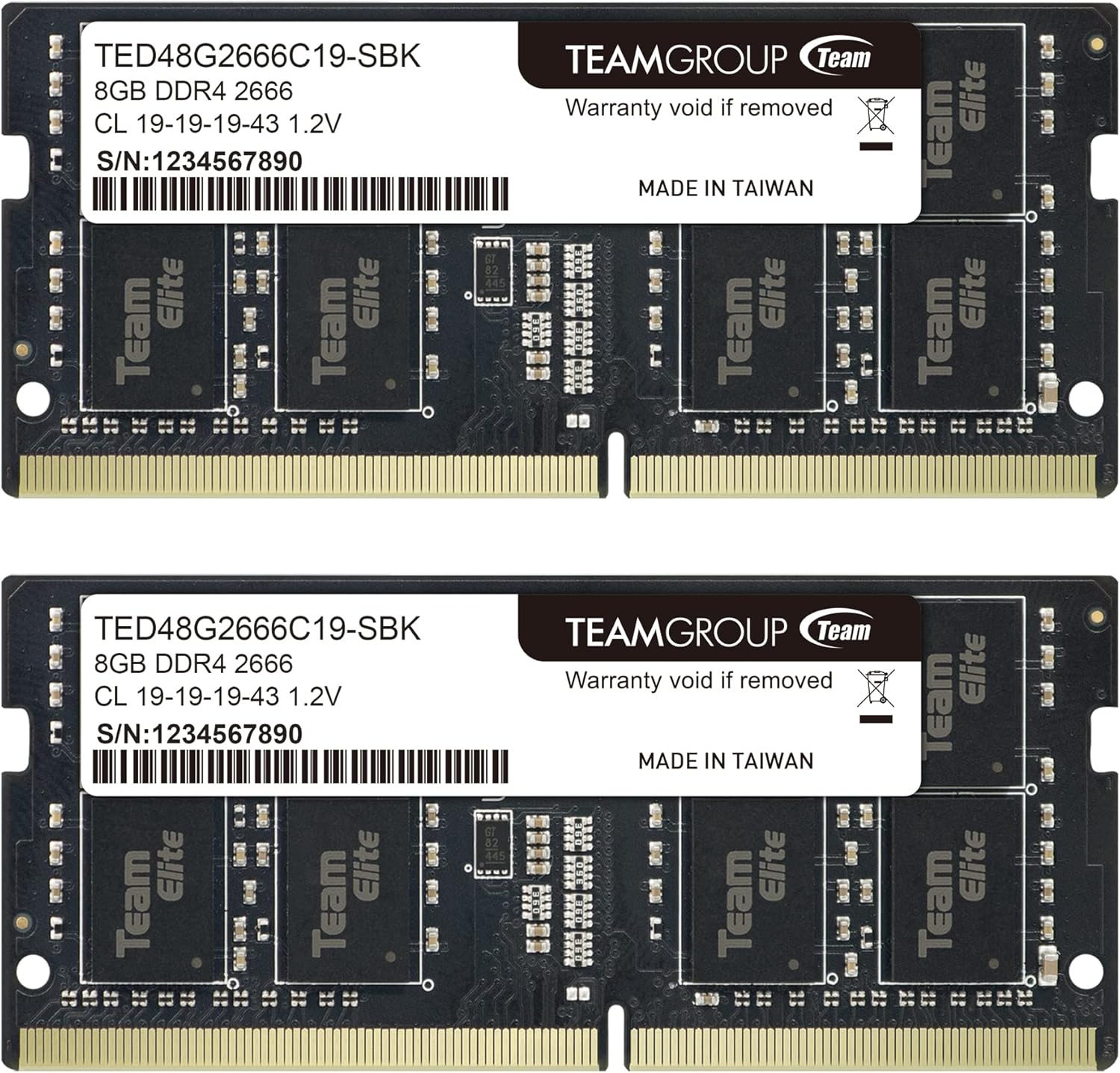 EQUIPO Elite DDR4 16GB Kit (2 x 8GB) 2666MHz PC4-21300 CL19 Sin Buffer No-ECC 1.2V SODIMM 260-Pin Módulo de Memoria para Laptop Notebook PC Computadora Ram Upgrade - TED416G2666C19DC-S01