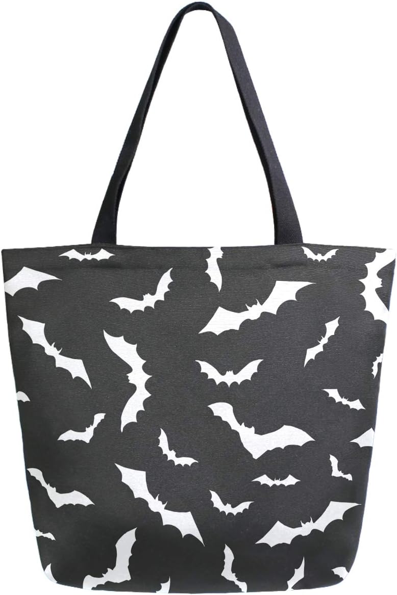 Chic Extra Large Shoulder Grocery Tote Bag, Stylish Bats Halloween Pattern Canvas Reusable Handle Bags for Men Women Gym Weekender Picnic Beach Travel Home Storage Market Shopping,Black