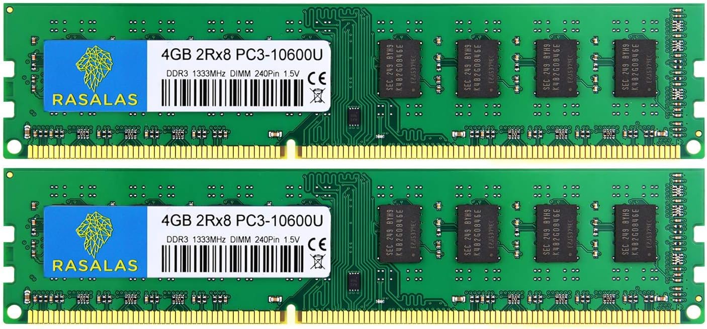 Rasalas 8GB Kit (2x4GB) DDR3 1333 PC3-10600U Ram DDR3 2Rx8 1.5V CL9 240-pin Memory Module Upgrade for Desktop