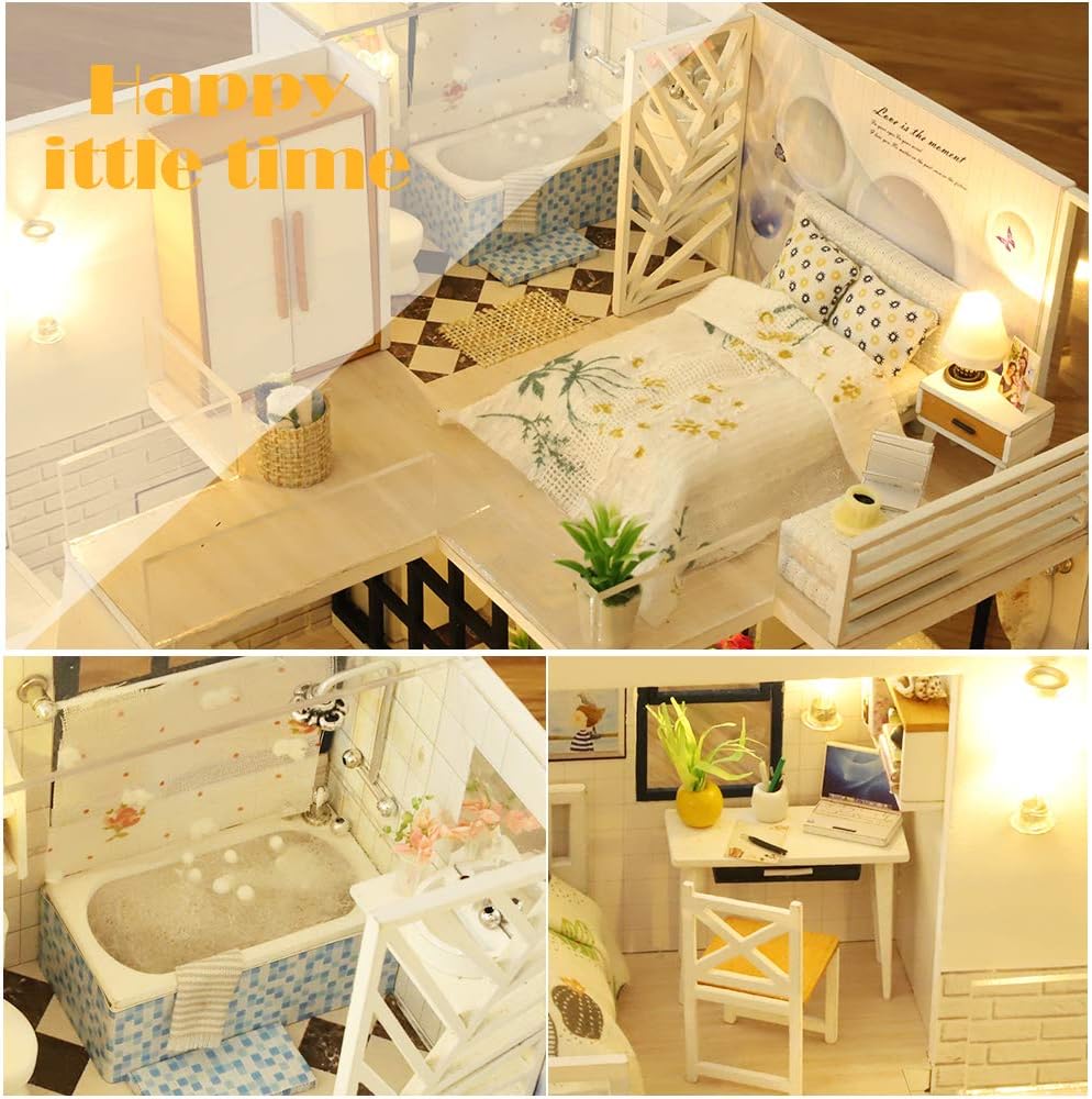 √ Alta calidad y excelente diseño que coinciden con su precio: los materiales son de buena calidad, los muebles y otras piezas de madera se cortan con precisión para que encajen correctamente. La luz LED, las plantas, los adornos y los muebles son bastante realistas y están diseñados de manera inteligente. Vale la pena el precio si buscas placer.