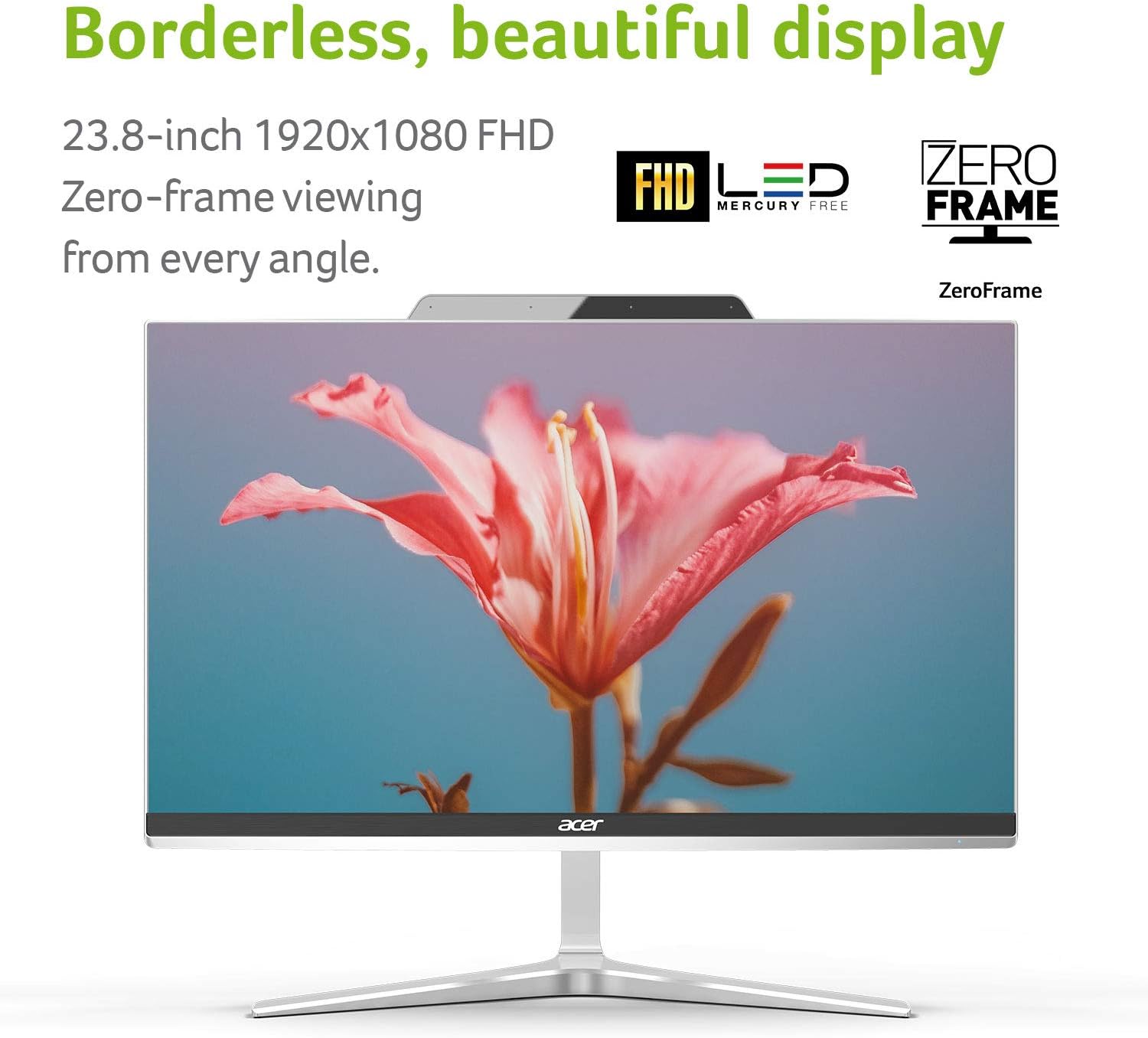 Computadora Acer Aspire Z24-890-UA91 AIO, 23.8 pulgadas Full HD, Intel Core i5-9400T de novena generación, DDR4 de 12 GB, SSD de 512 GB, WiFi 802.11ac, USB 3.1 tipo C, teclado y ratón inalámbricos, Windows 10 Home, plata