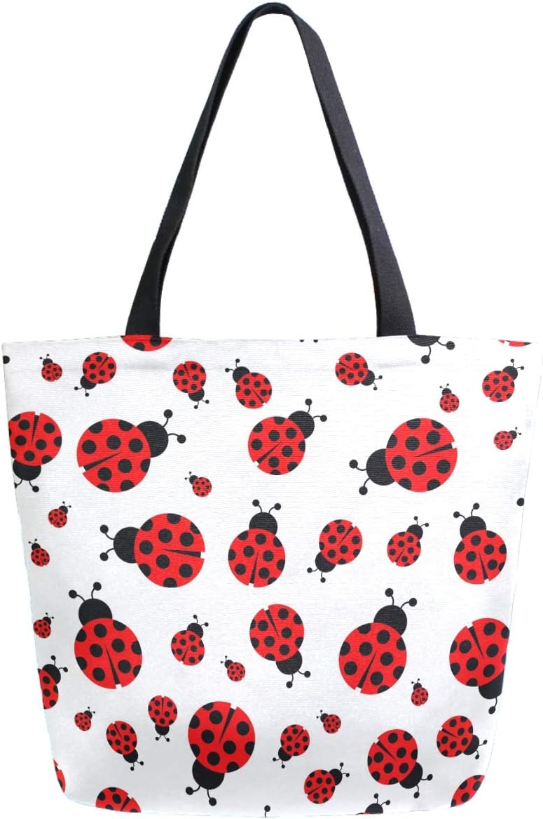 Chic Extra Large Shoulder Grocery Tote Bag, Fresh Ladybug Pattern Canvas Reusable Handle Bags for Men Women Gym Weekender Picnic Beach Travel Home Storage Market Shopping