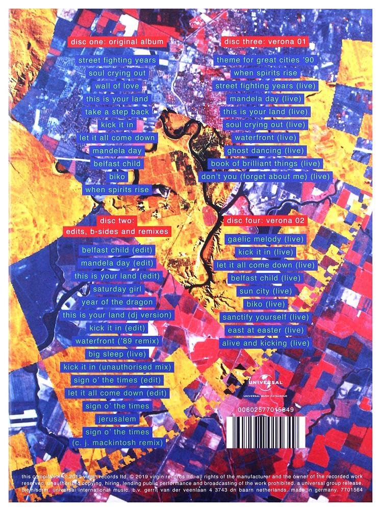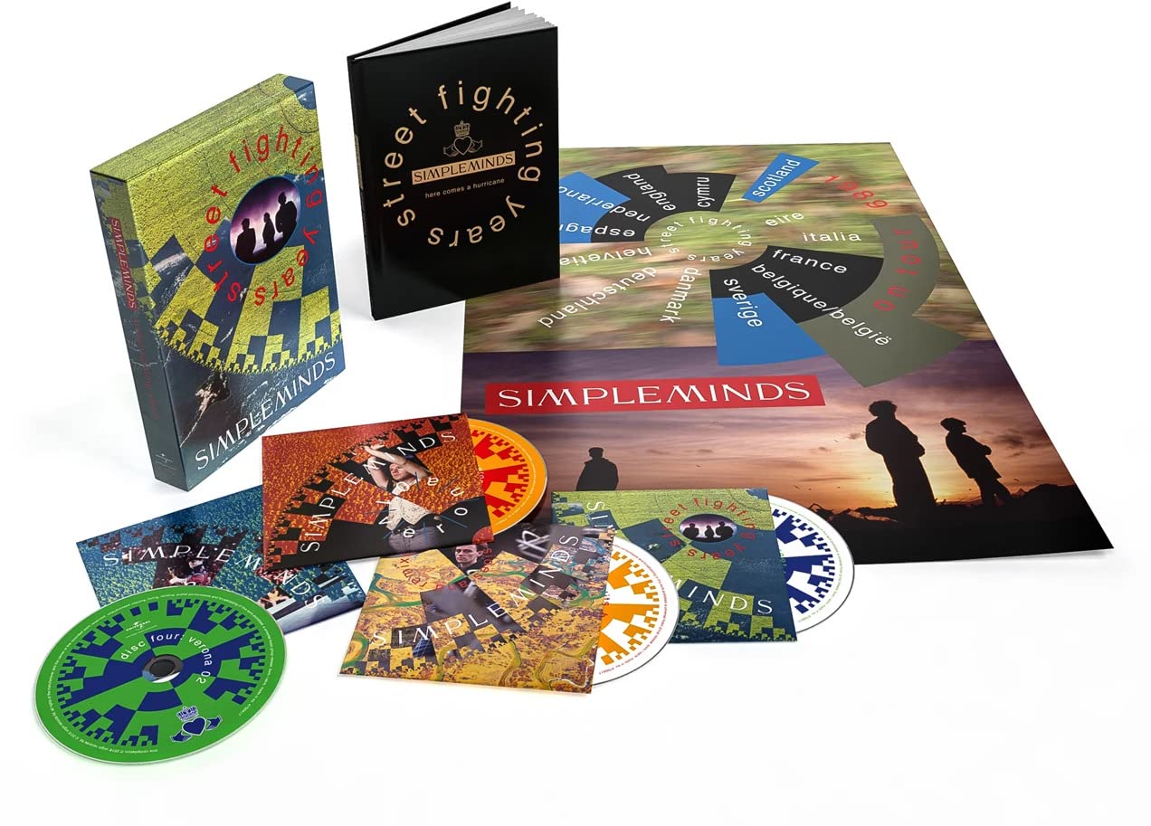 Street Fighting Years, publicado originalmente en mayo de 1989 y producido por Trevor Horn (y Stephen Lipson), fue el octavo álbum de estudio de Simple Minds. Grabado en Escocia entre 1988 y 1989, durante un período de cambios de personal dentro de la banda, el álbum se apartó del sonido anterior de la banda. Mientras mantenían el sonido Arena Rock por el que la banda era conocida, se alejaron de las influencias Soul de sus discos anteriores y adoptaron un nuevo sonido celtic/folk. La letra se basaba en los temas más políticos que la banda había introducido con «Ghost Dancing», cubriendo temas como el impuesto electoral, los «problemas» irlandeses y activistas políticos como Nelson Mandela y Steven Biko. Esta edición en caja incluye el álbum de estudio original en el disco 1, una selección de caras B y remezclas en el disco 2 y el concierto en vivo de 1989 de la banda en Verona, Italia, en los discos 3 y 4.