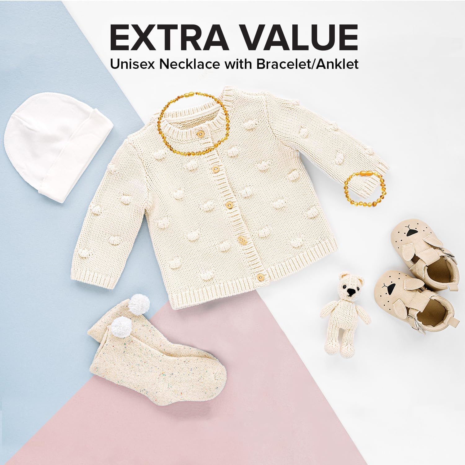Baltic Amber Necklace and Bracelet Gift Set (Unisex Honey 12.5 Inches/5.5 Inches) - Certified Premium Quality Raw Baltic Sea Amber