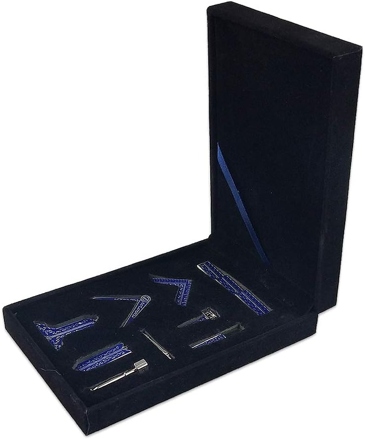 Nine Ornamental Masonic Miniature Non-Working Tools Presented in a Blue Velvet Gift Box.