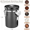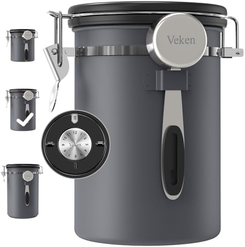 Canister de Café Veken, Contenedor de Cocina Hermético de Acero Inoxidable para Almacenamiento de Alimentos con Rastreador de Fecha y Cucharón para Café Molido, Granos, Té, Harina, Cereal, Azúcar, 22OZ, Gris