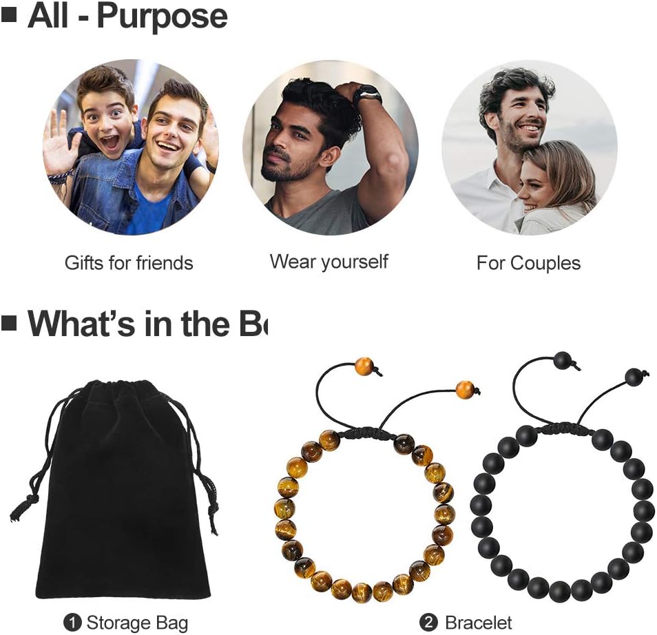 M MOOHAM Natural Stone Bracelets for Men - 8mm Tiger Eye, Matte Agate, Lava Rock - Teen Boys Gifts for Birthday, Anniversary, Christmas