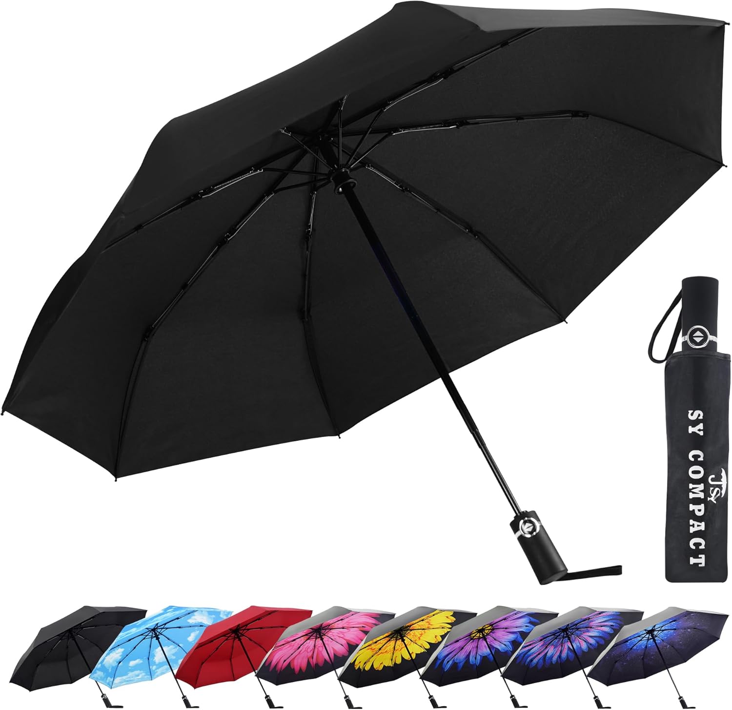 SY COMPACT Travel Umbrella Windproof Factory outlet Compact Automatic Umbrellas for Rain Compact Small UV Sun Protection Umbrella Durable Waterproof Lightweight-Fits Backpack Car Purse