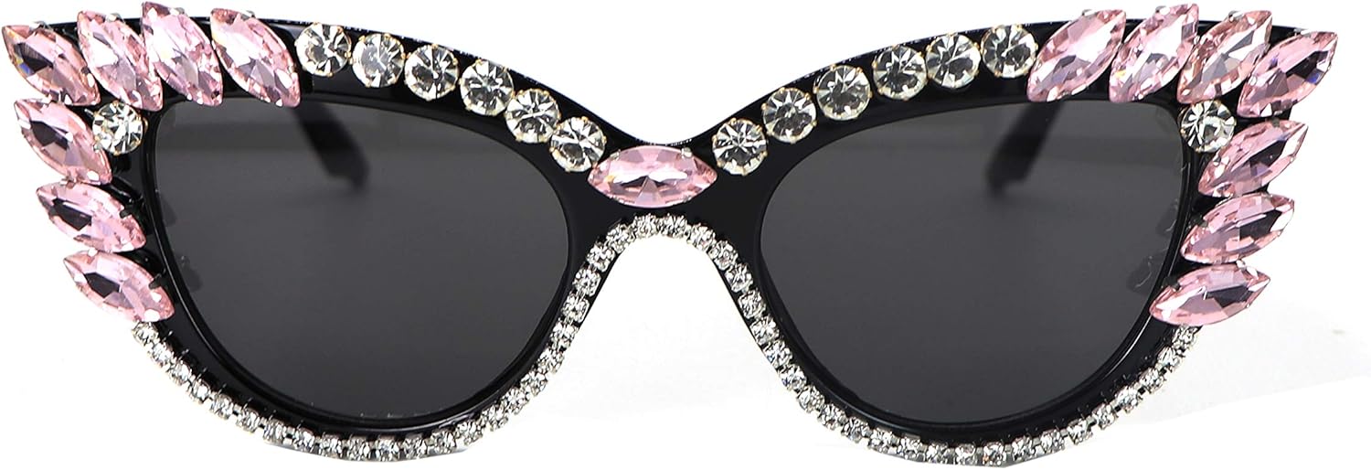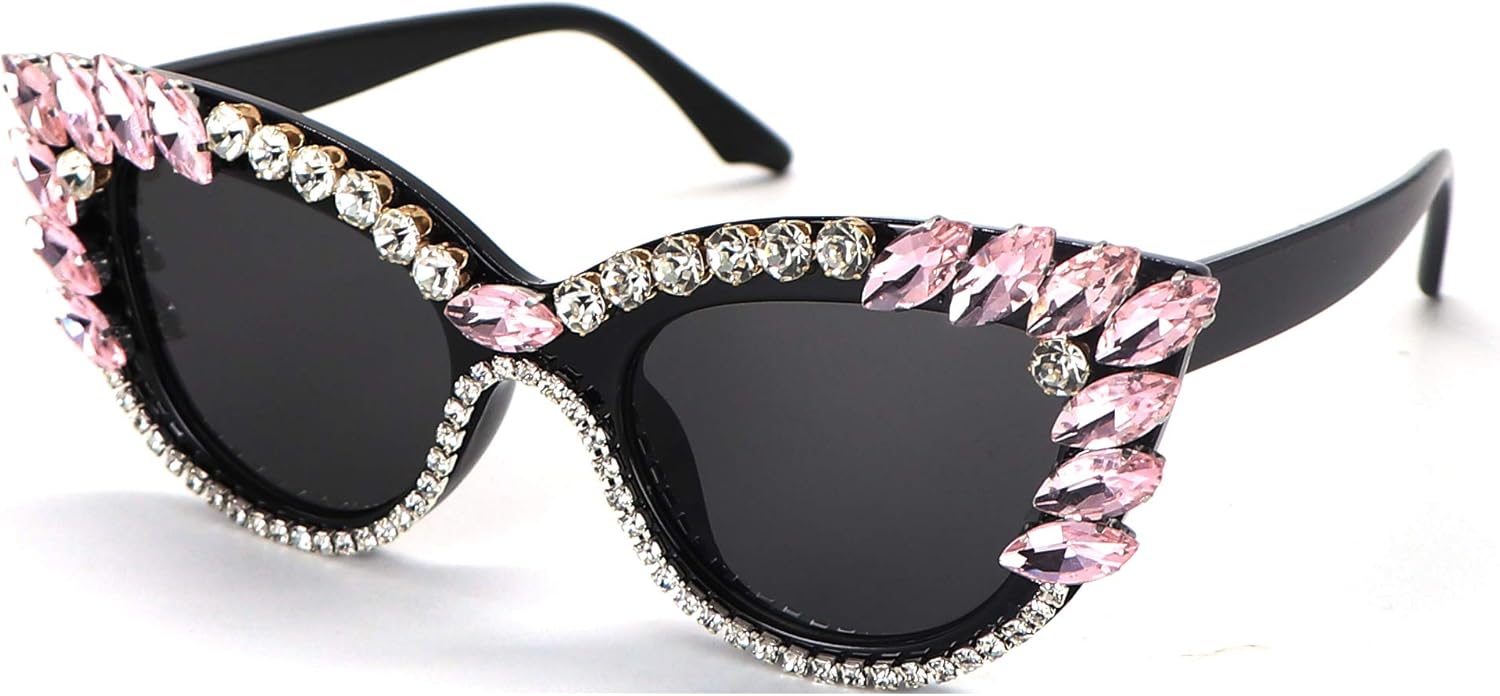 FUPRECIOUS Retro Cateye Sunglasses for Women UV400 Protection Cat Eye bling rhinestone Sun Glasses