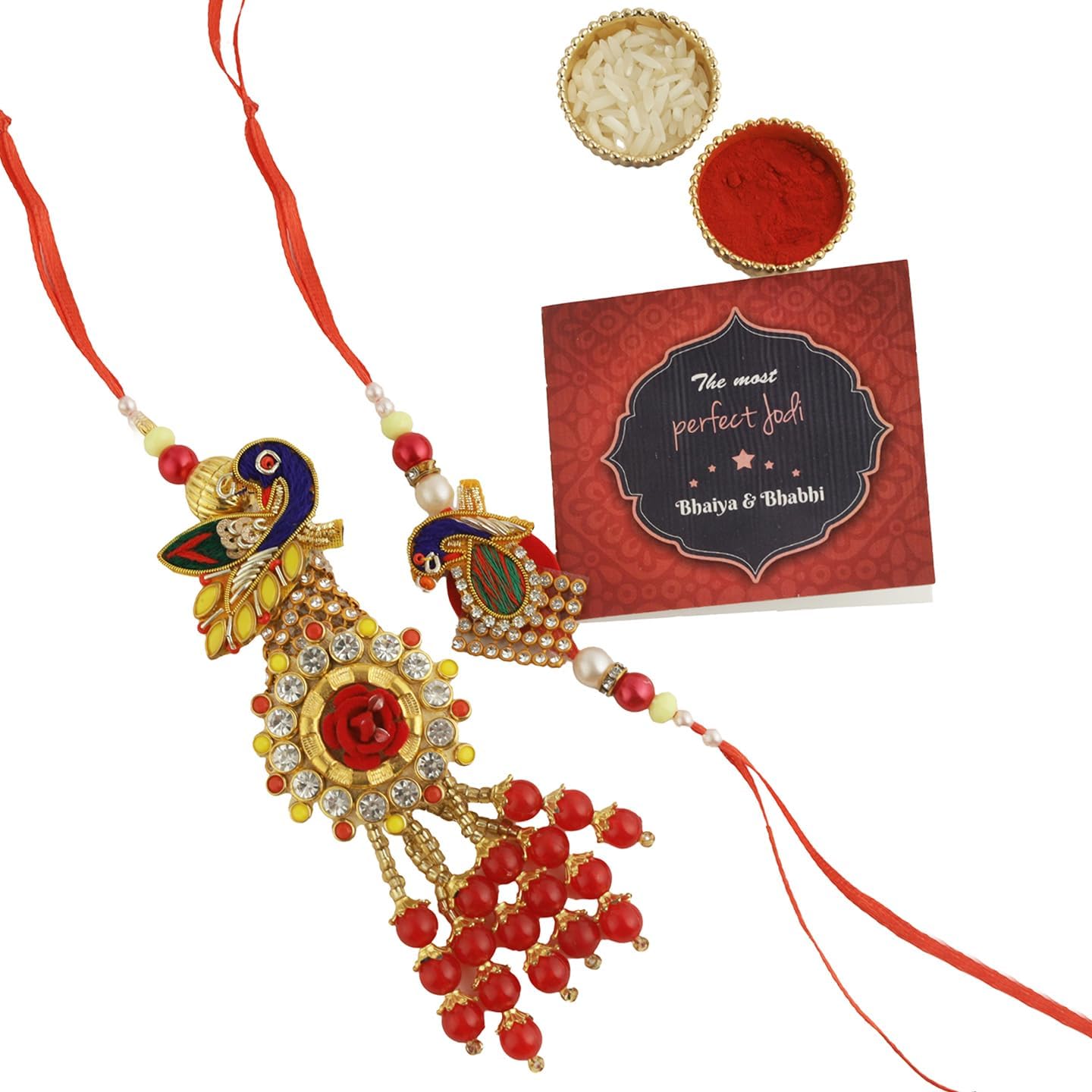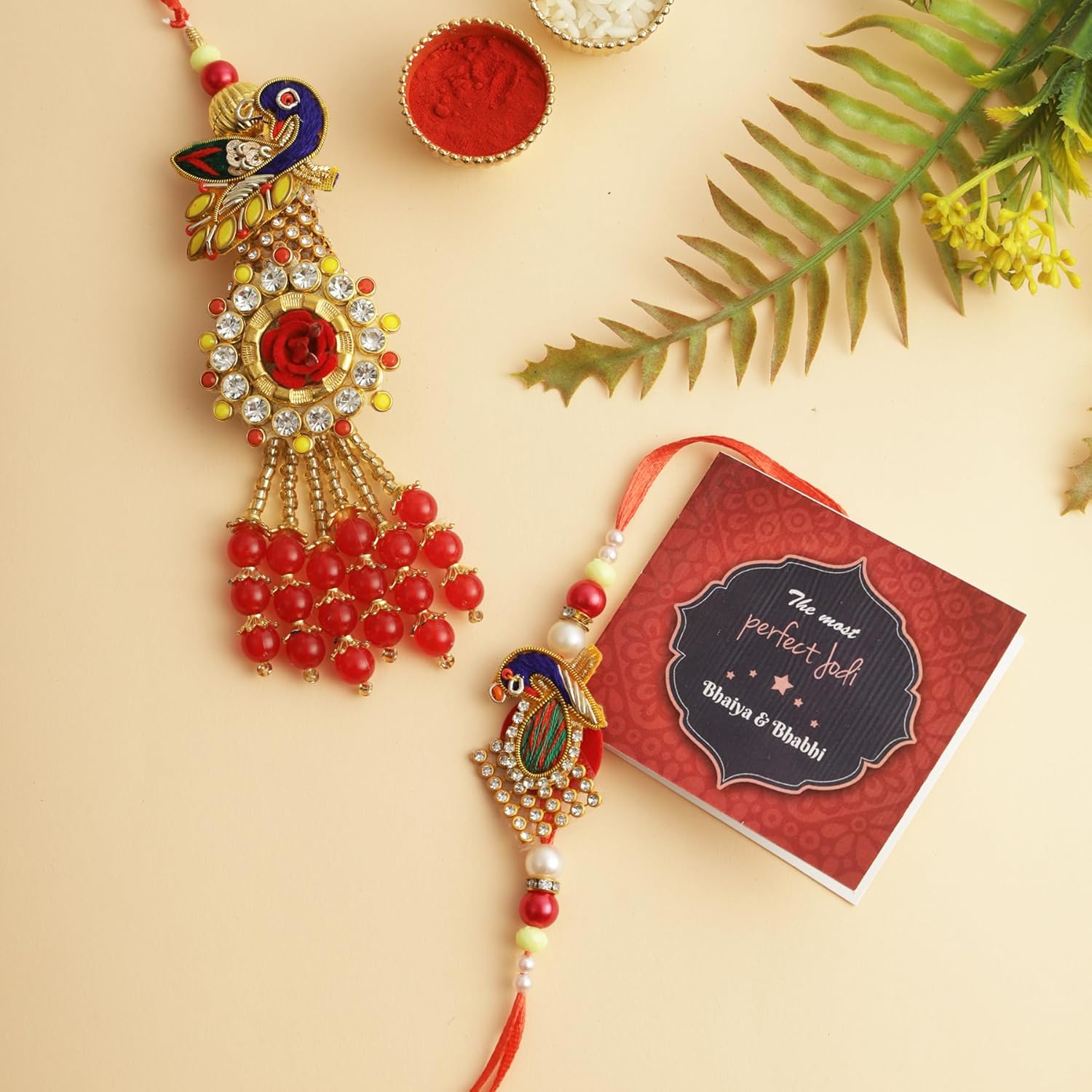 TIED RIBBONS Rakhi for Brother and Bhabhi | Rakhi Set for Brother | Raksha bandhan Mini Card | Roli Tikka - Rakhi for Bhaiya Bhabhi Gift Set | Lumba Rakhi for Bhabhi | Rakhi Thread