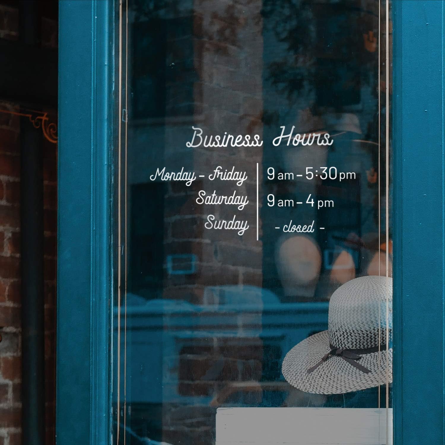Vinyl Wall Decal - Custom Business Hours - From 0.5" To 12" Each - Window Storefront Cursive Lettering - Easy Professional Self Adhesive Indoor Outdoor Work Office Coffee Shop Restaurant Location