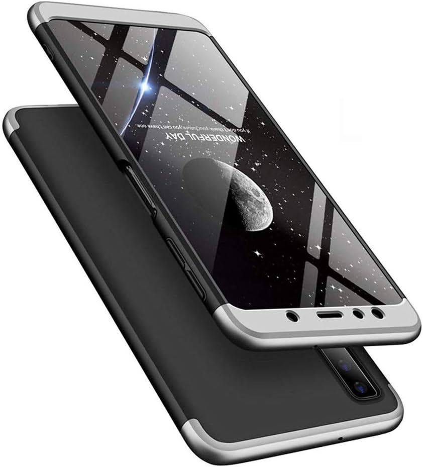 LEECOCO Samsung Galaxy A50 Case Ultra Thin 3 in 1 360 Degree Full Body Case Premium Shockproof Hard PC Plastic Anti-Scratch Bumper Cover for Samsung Galaxy A50 3 in 1 Black Silver AR