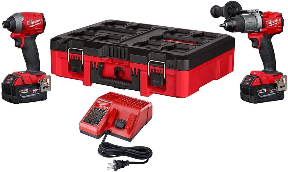 Milwaukee 2997-22PO M18 Fuel 18 Volt lithium-Ion Cordless Brushless Impact Driver and Hammer Drill Combo Kit with Packout Case