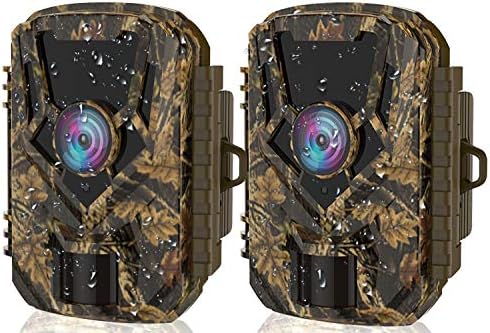 Mini Trail Game Camera 20MP 1080P Waterproof 0.4s Trigger Speed Hunting Cams with Night Vision Motion Activated for Wildlife Monitoring and Home Security (2 Pack)