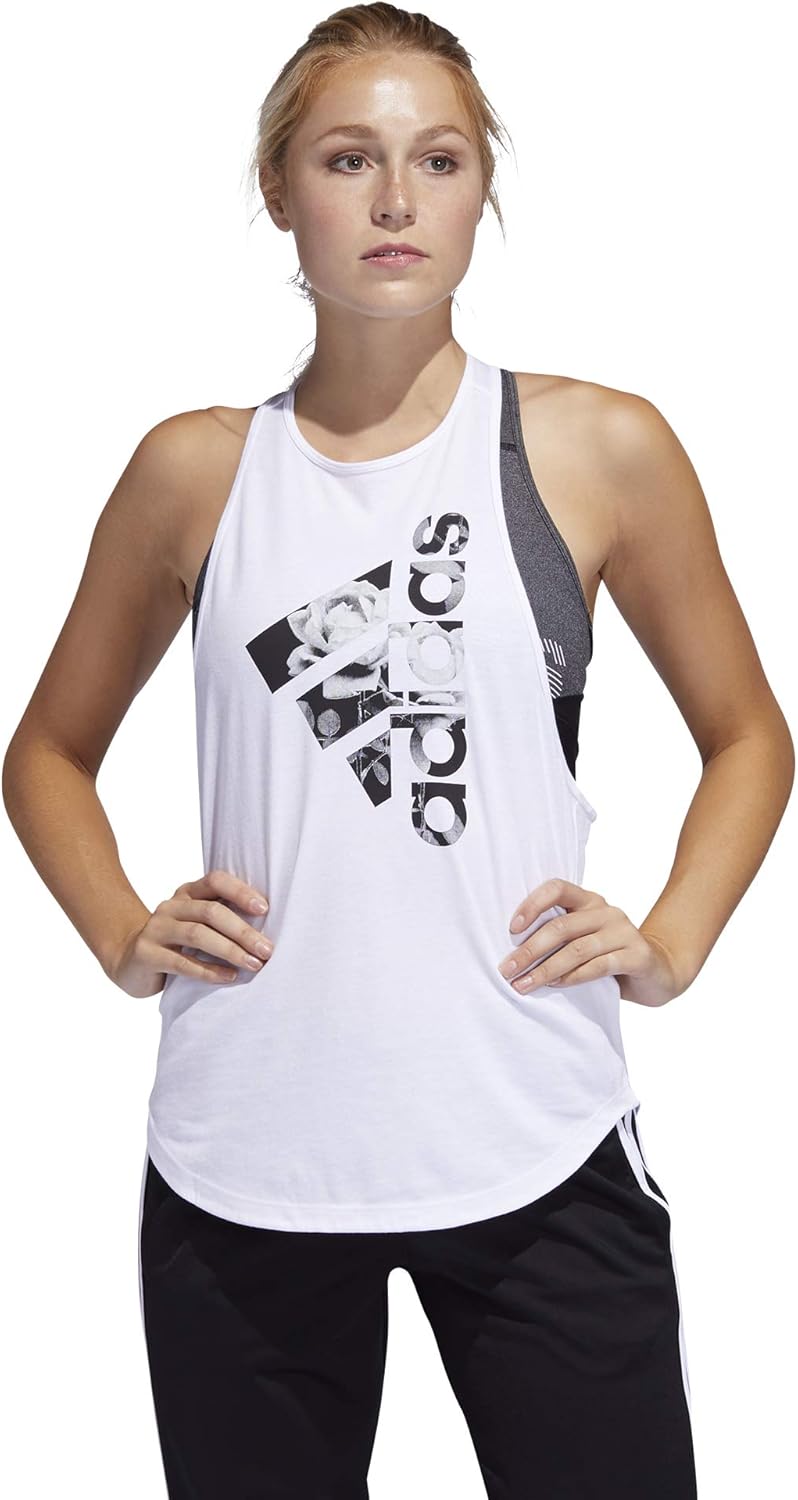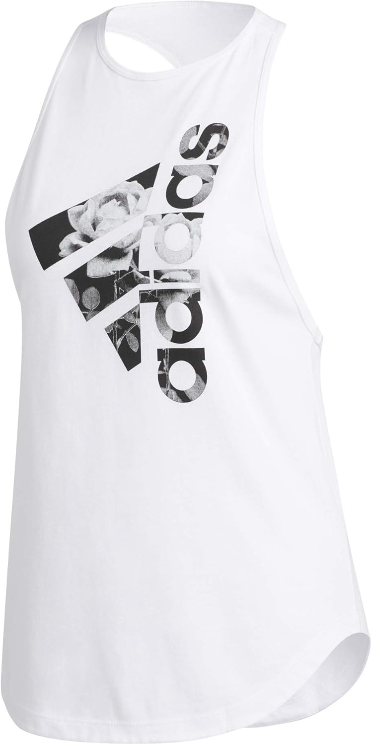 Añade un toque de poder floral a tu look. Esta camiseta sin mangas para mujer de adidas añade tonos pastel y estampados florales a un estilo casual inspirado en el deporte. Está hecha de suave jersey para mayor comodidad.