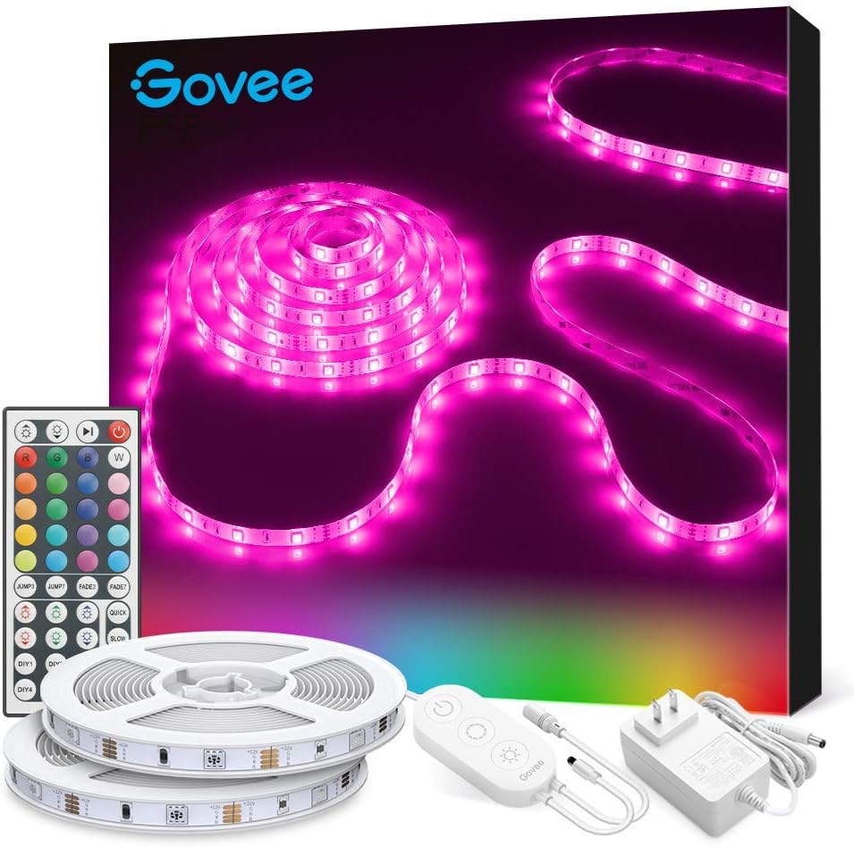 Tira de luces LED Govee, tira de luz LED RGB de 16.4 pies con control remoto, tira de luz de 20 colores y modo DIY que cambia de color, luces LED de fácil instalación para dormitorio, techo, cocina