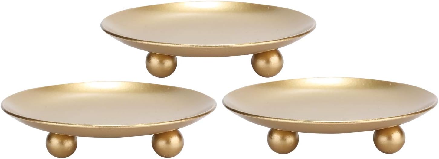 Iron Plate Candle Holder, Gold, Decorative Iron Pillar Candle Holder, Set of 3,Candle Stand for Wax Candles
