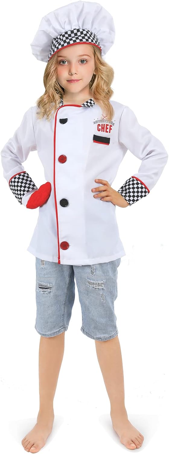 Disfraz de Chef Infantil Familus Kids Chef, Chaqueta de Cocinero para Niños y Niñas de 3 a 8 Años